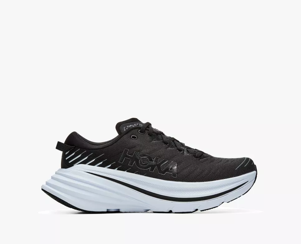 A maximally cushioned road shoe designed to go the distance, the game-changing Bondi X is spring-loaded with our propulsive carbon-fiber plate. The original Bondi cushioning and lines are here, providing the soft, balanced ride the franchise is known for. The Bondi X fine-tunes the geometry with an extended rocker for greater acceleration, while also delivering smoother toe-offs, thanks to the carbon-fiber plate. HOKA’s extended crash pad acts like a veritable marshmallow, employing the softest foam in our arsenal to date. Paired with a progressive upper with embroidered TPU yarn, the Bondi X will get you there, and then some.