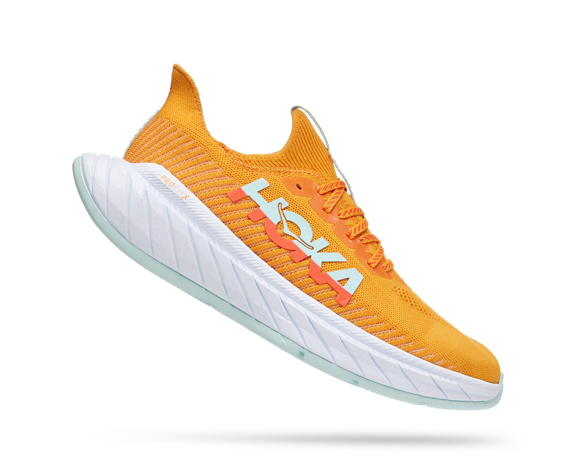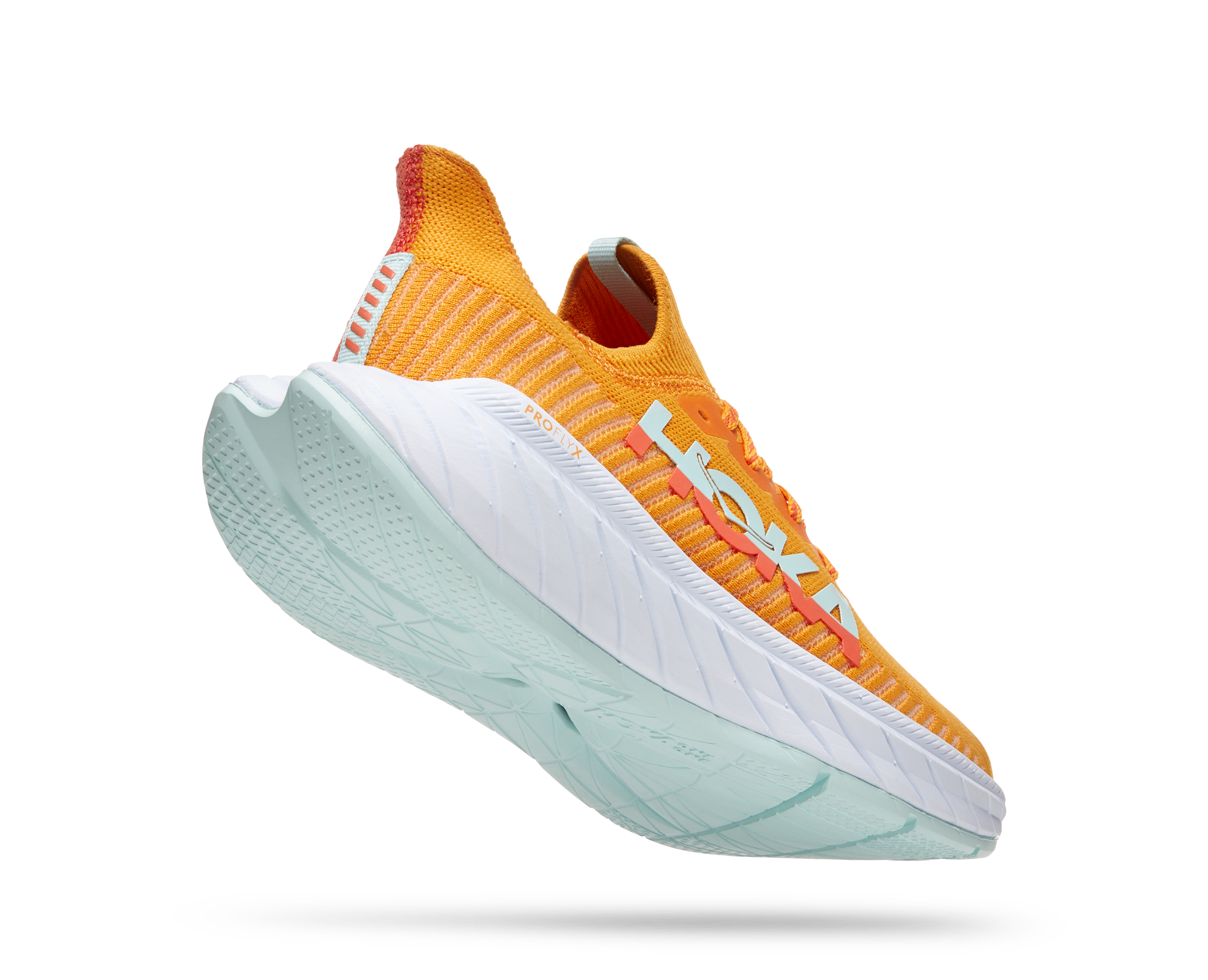 Delivering an even more propulsive ride than its predecessor through an energized new foam midsole, the new Carbon X 3 launches off the line with a brand new upper. Reworked with a premium performance knit for improved fit, this endurance racer is engineered with the same responsive, carbon fiber plate and aggressive Meta-Rocker. A formidable competitor, this performance shoe is finished with bold, asymmetrical coloring for a statement – making finish.