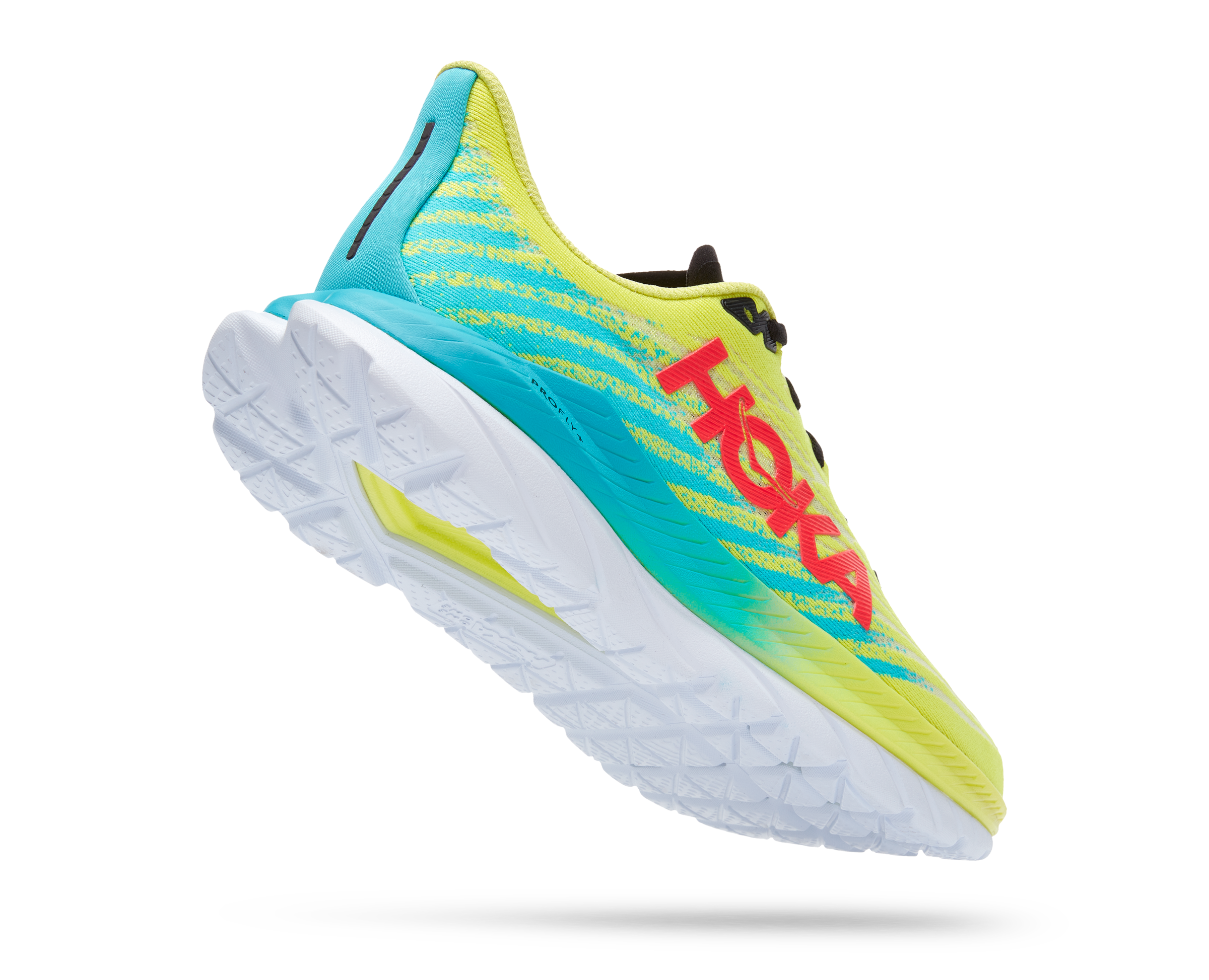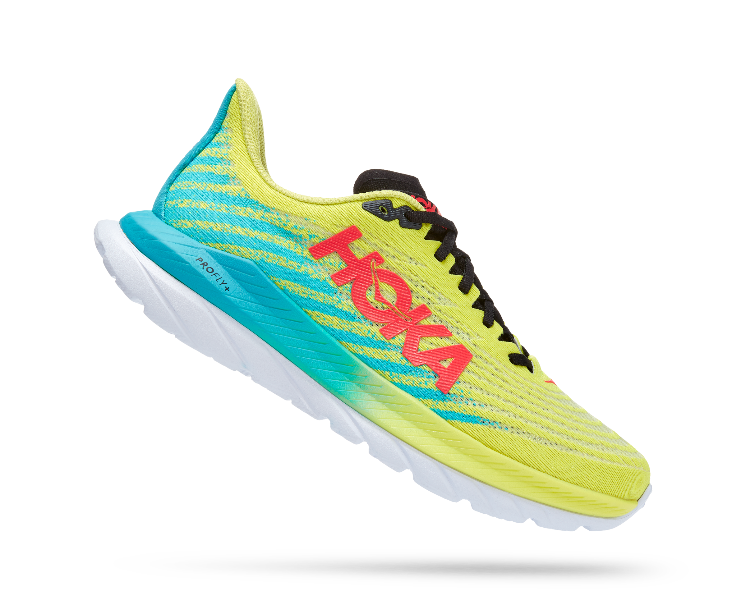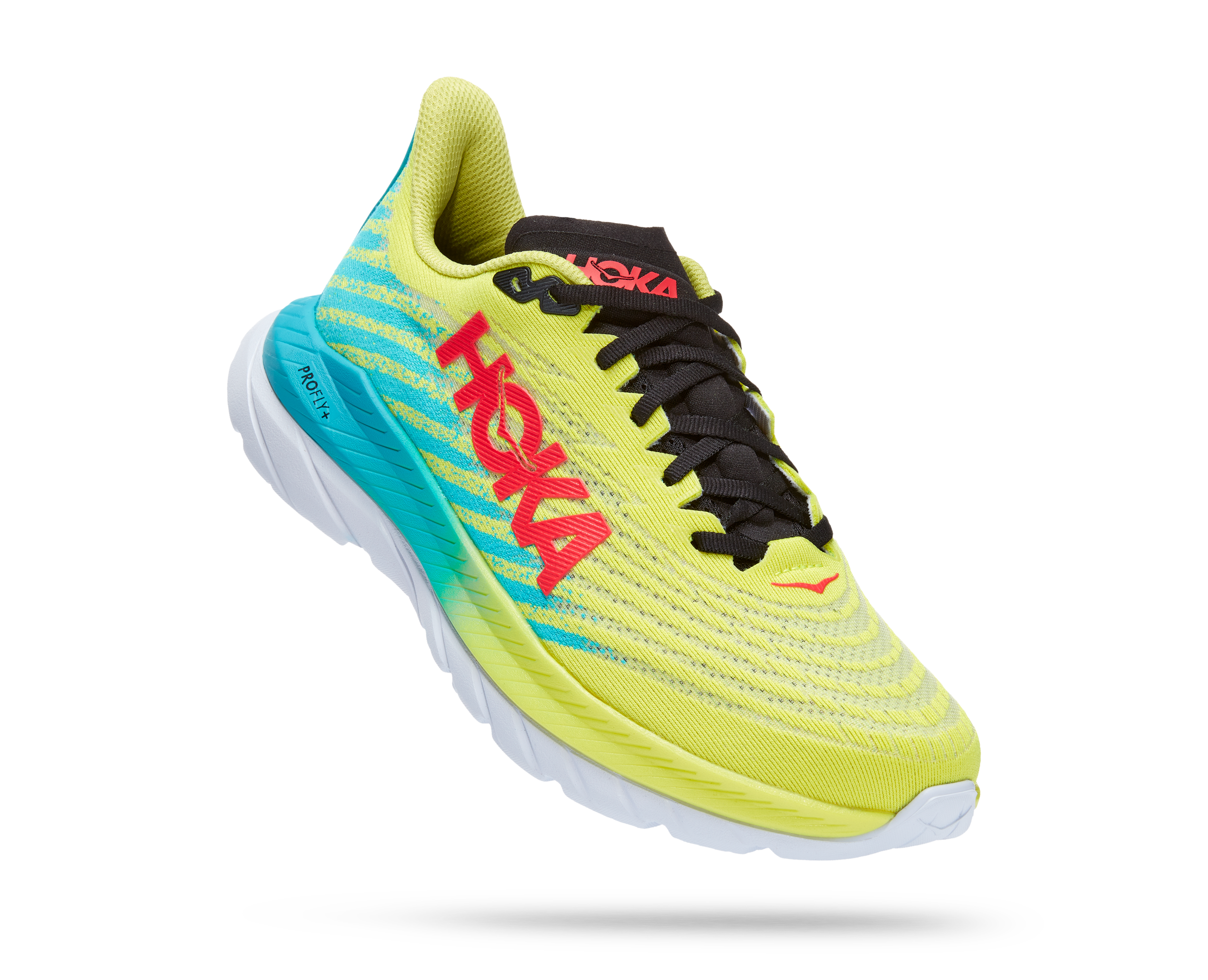 The lovechild of Mach 4 and Mach Supersonic, this lively pavement pounder is built for performance and ready to race. Sporting a stripped back creel mesh upper and lay-flat tongue, the new Mach 5 delivers a snappier ride with PROFLY’s stacked midsole setup, offering a lightweight, responsive foam directly underfoot and rubberized EVA below.