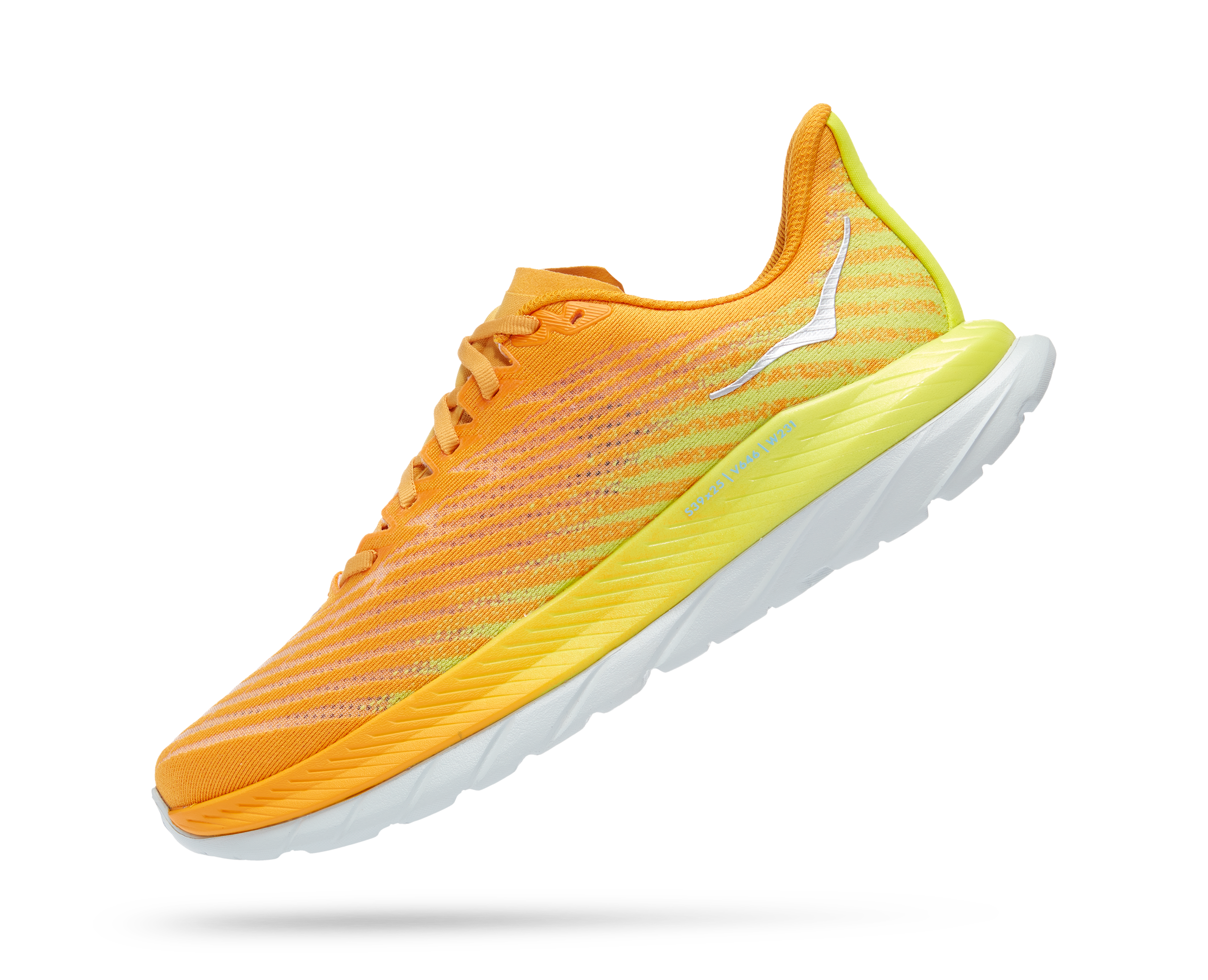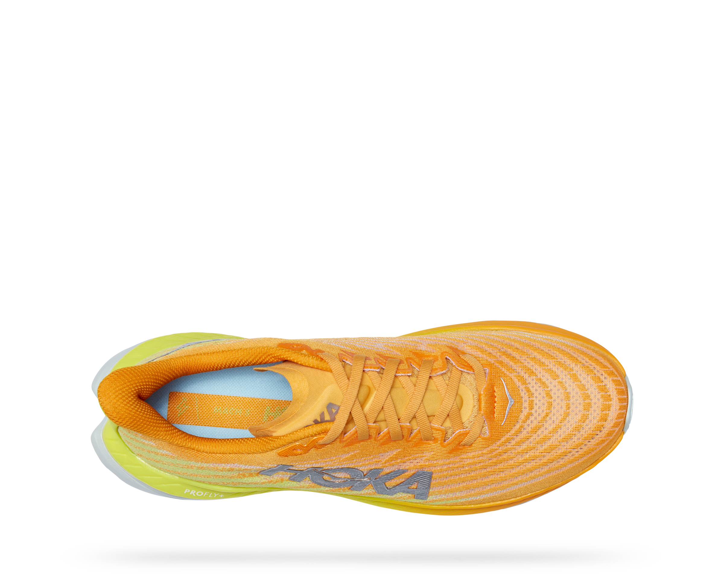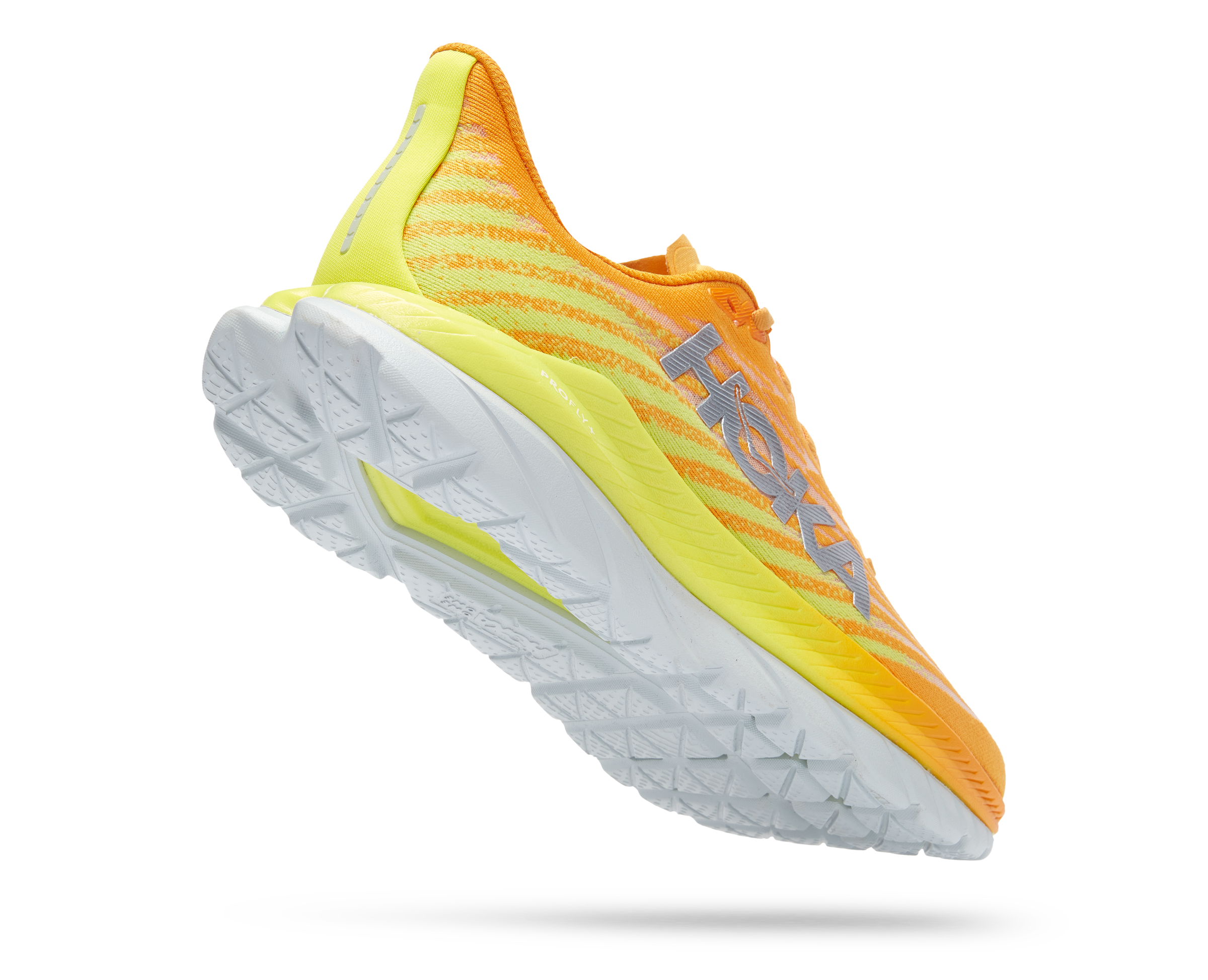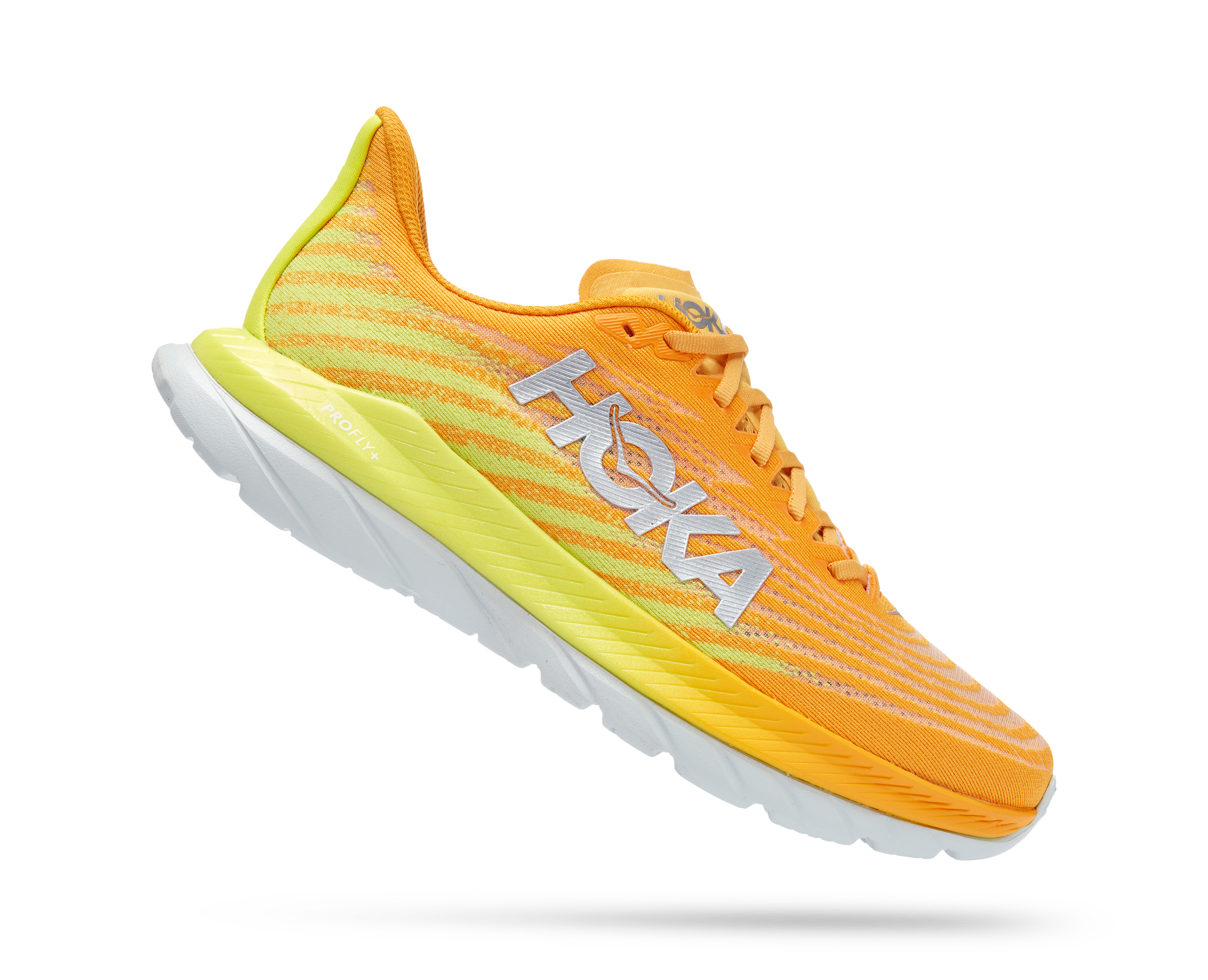 The lovechild of Mach 4 and Mach Supersonic, this lively pavement pounder is built for performance and ready to race. Sporting a stripped back creel mesh upper and lay-flat tongue, the new Mach 5 delivers a snappier ride with PROFLY’s stacked midsole setup, offering a lightweight, responsive foam directly underfoot and rubberized EVA below.