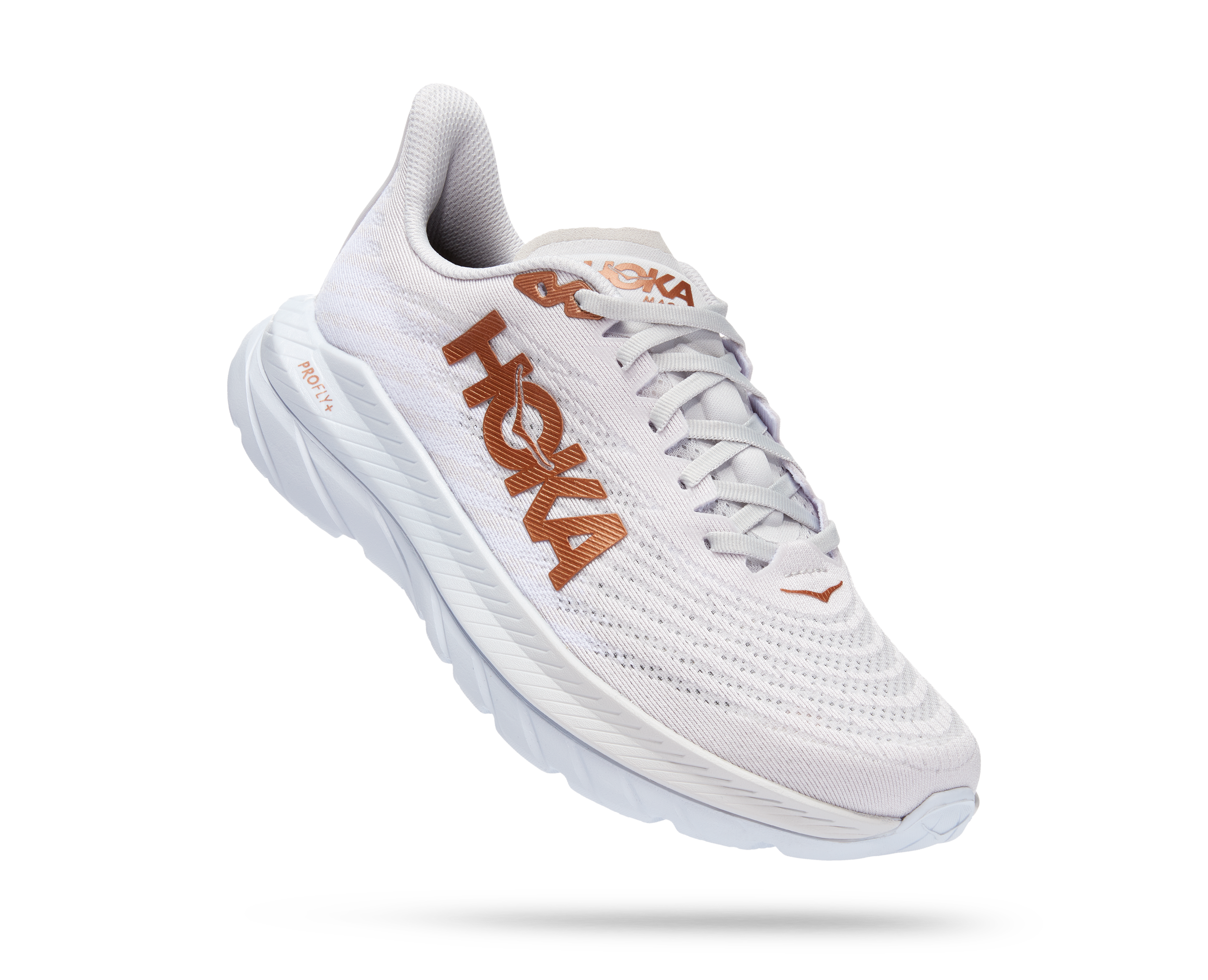 The lovechild of Mach 4 and Mach Supersonic, this lively pavement pounder is built for performance and ready to race. Sporting a stripped back creel mesh upper and lay-flat tongue, the new Mach 5 delivers a snappier ride with PROFLY’s stacked midsole setup, offering a lightweight, responsive foam directly underfoot and rubberized EVA below.