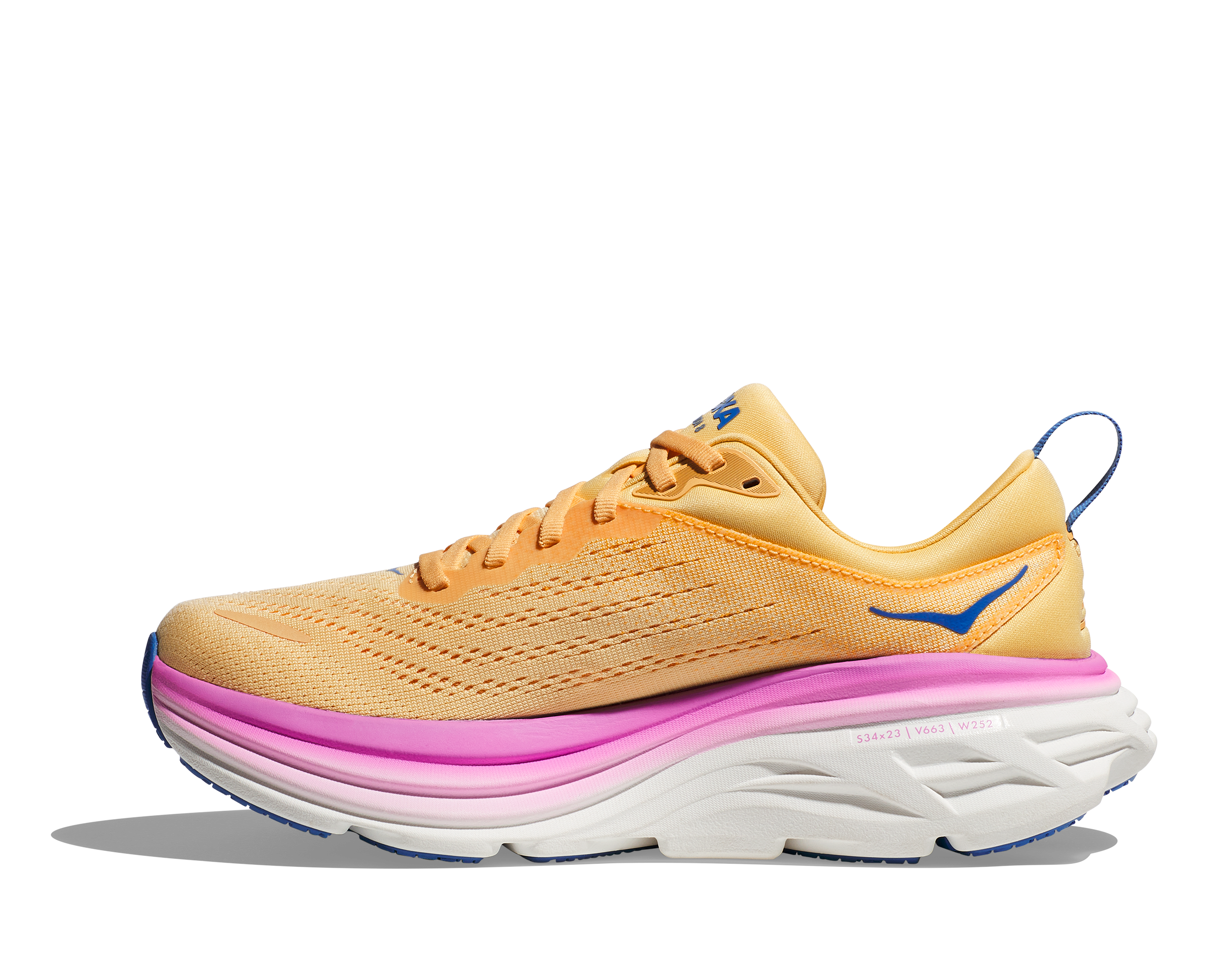 The ultra-cushioned game-changer. One of the hardest working shoes in the HOKA lineup, the Bondi takes a bold step forward this season reworked with softer, lighter foams and a brand-new extended heel geometry. Taking on a billowed effect, the rear crash pad affords an incredibly soft and balanced ride from heel strike to forefoot transaction.