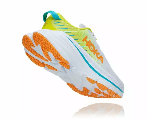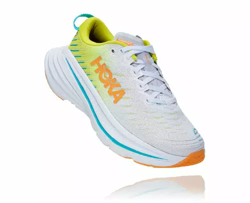 A maximally cushioned road shoe designed to go the distance, the game-changing Bondi X is spring-loaded with our propulsive carbon-fiber plate. The original Bondi cushioning and lines are here, providing the soft, balanced ride the franchise is known for. The Bondi X fine-tunes the geometry with an extended rocker for greater acceleration, while also delivering smoother toe-offs, thanks to the carbon-fiber plate. HOKA’s extended crash pad acts like a veritable marshmallow, employing the softest foam in our arsenal to date. Paired with a progressive upper with embroidered TPU yarn, the Bondi X will get you there, and then some.