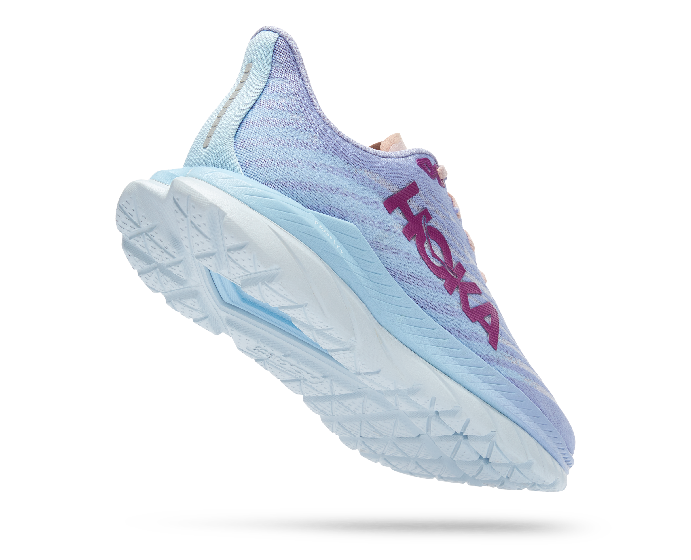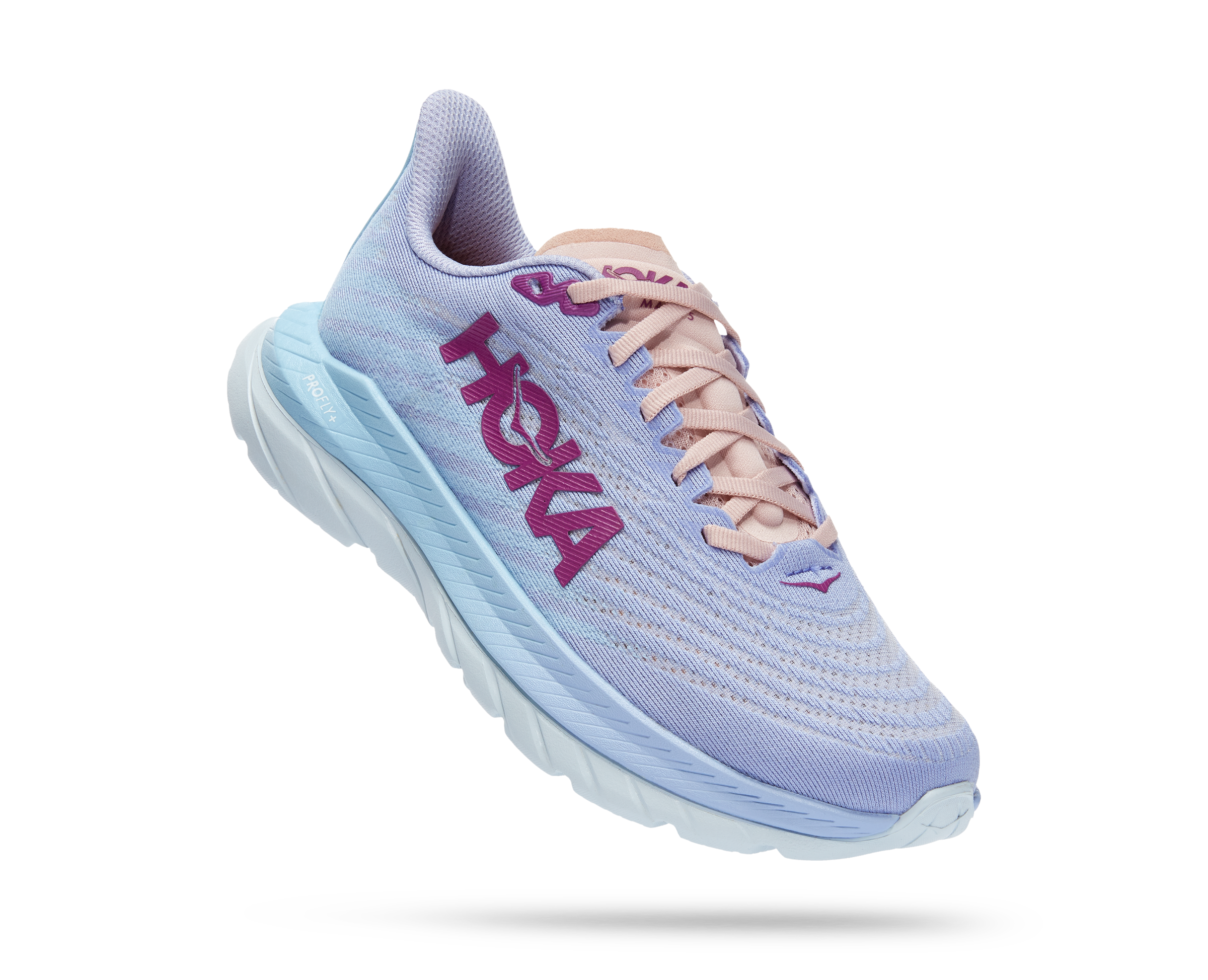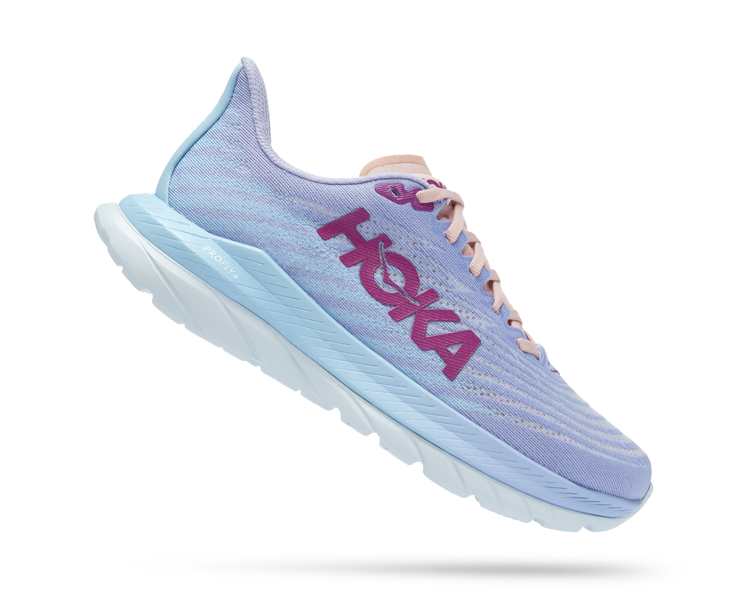 The lovechild of Mach 4 and Mach Supersonic, this lively pavement pounder is built for performance and ready to race. Sporting a stripped back creel mesh upper and lay-flat tongue, the new Mach 5 delivers a snappier ride with PROFLY’s stacked midsole setup, offering a lightweight, responsive foam directly underfoot and rubberized EVA below.