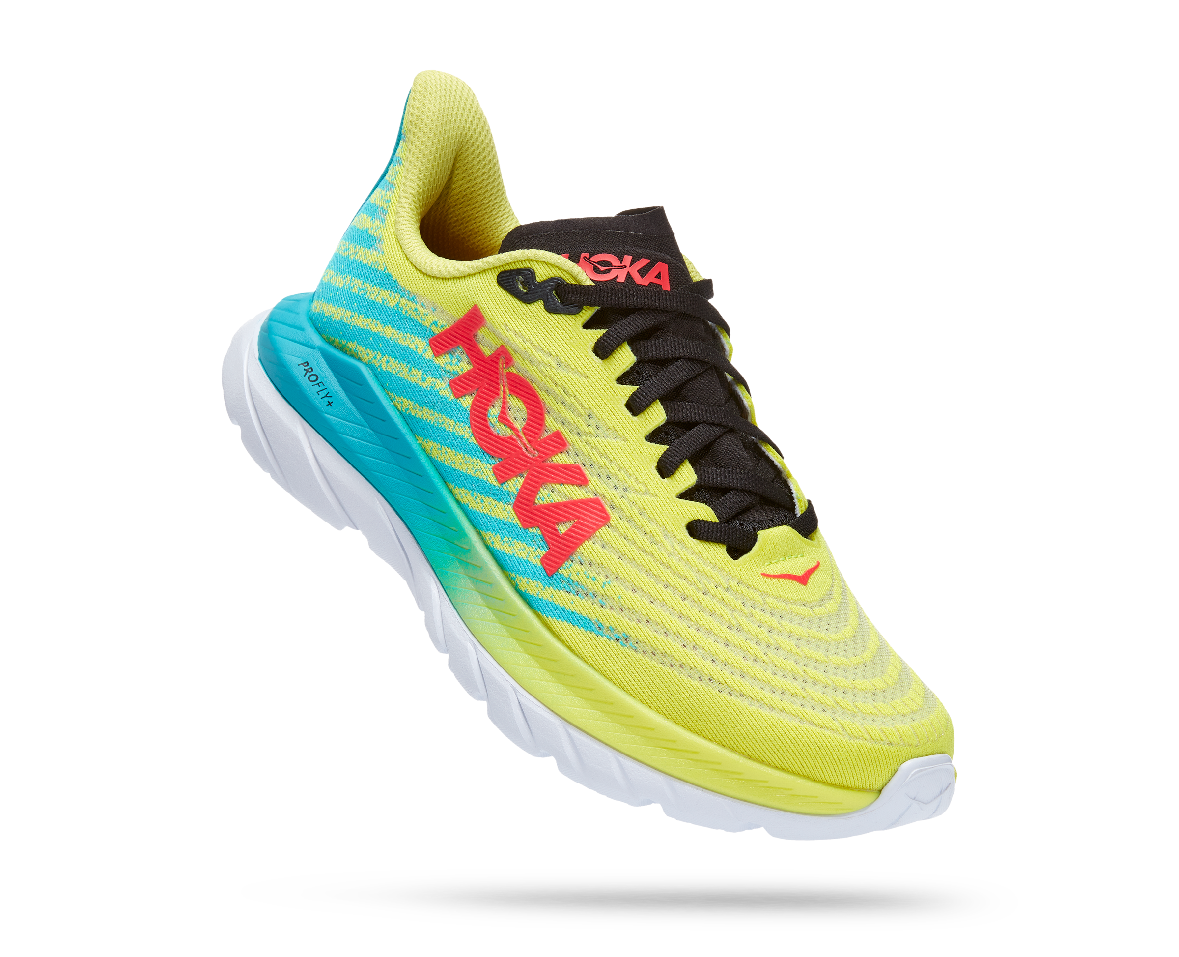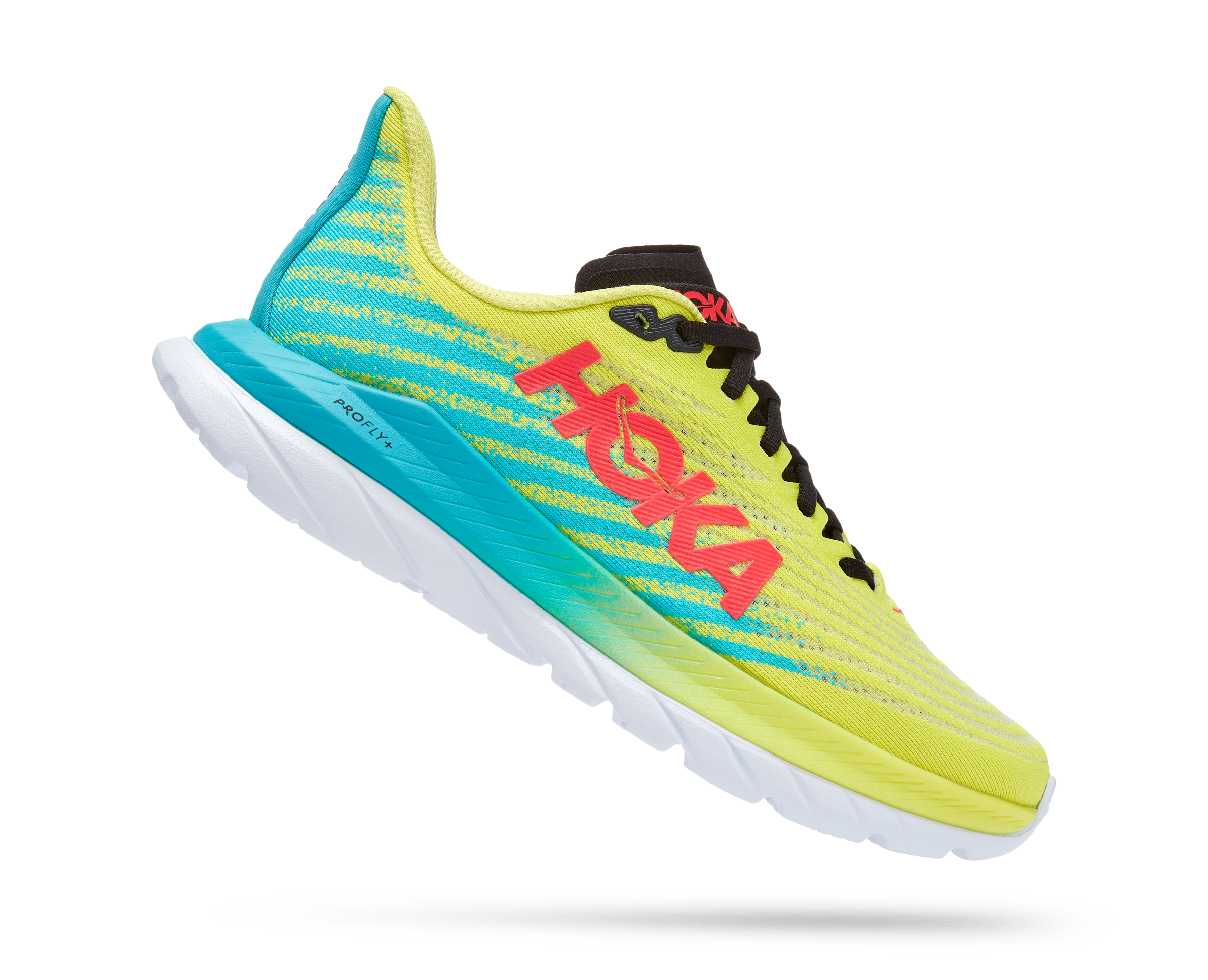 The lovechild of Mach 4 and Mach Supersonic, this lively pavement pounder is built for performance and ready to race. Sporting a stripped back creel mesh upper and lay-flat tongue, the new Mach 5 delivers a snappier ride with PROFLY’s stacked midsole setup, offering a lightweight, responsive foam directly underfoot and rubberized EVA below.