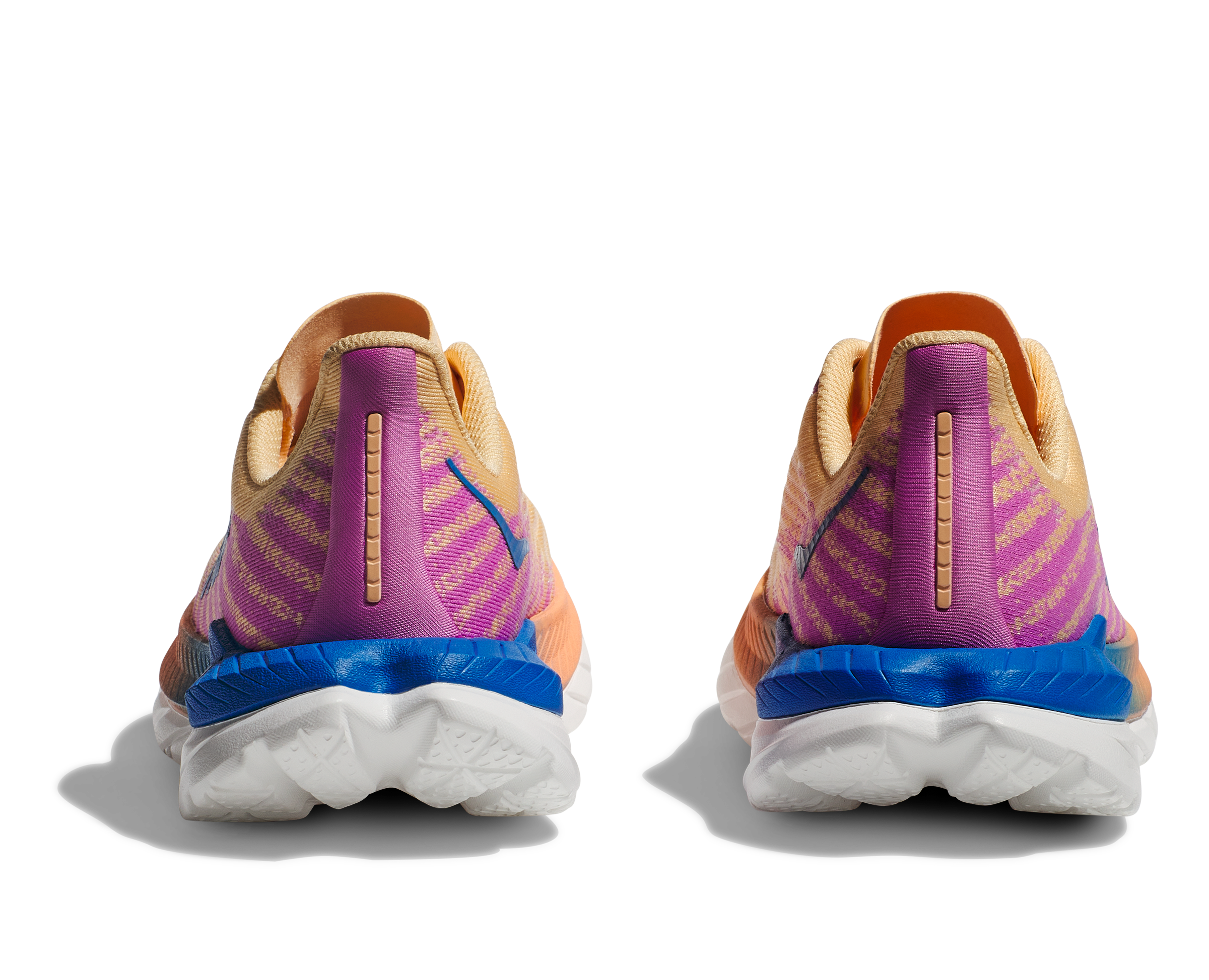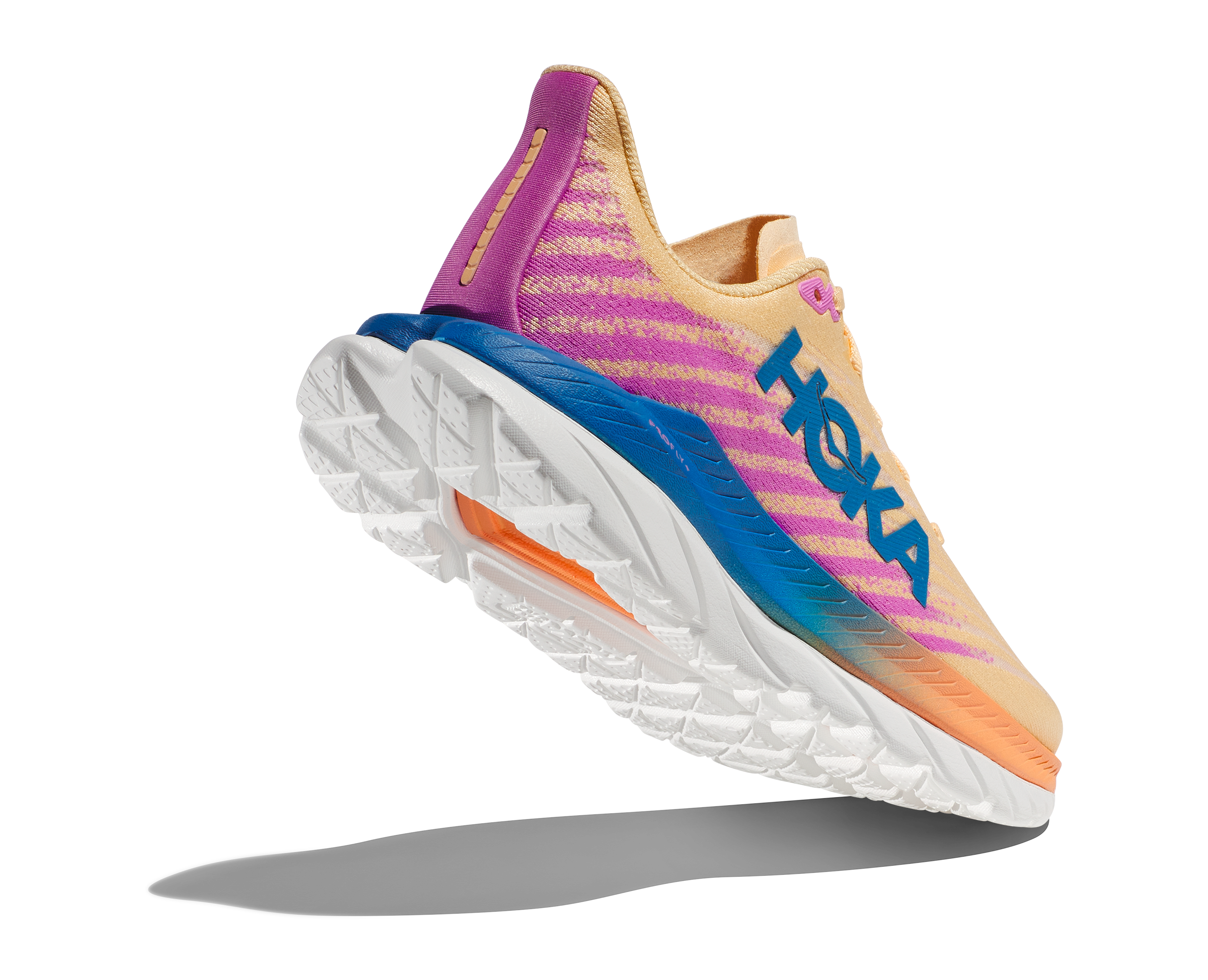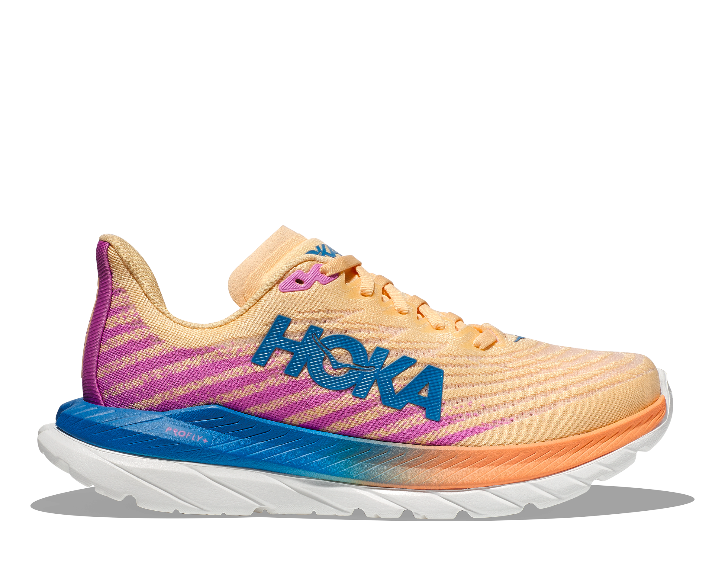 The lovechild of Mach 4 and Mach Supersonic, this lively pavement pounder is built for performance and ready to race. Sporting a stripped back creel mesh upper and lay-flat tongue, the new Mach 5 delivers a snappier ride with PROFLY’s stacked midsole setup, offering a lightweight, responsive foam directly underfoot and rubberized EVA below.