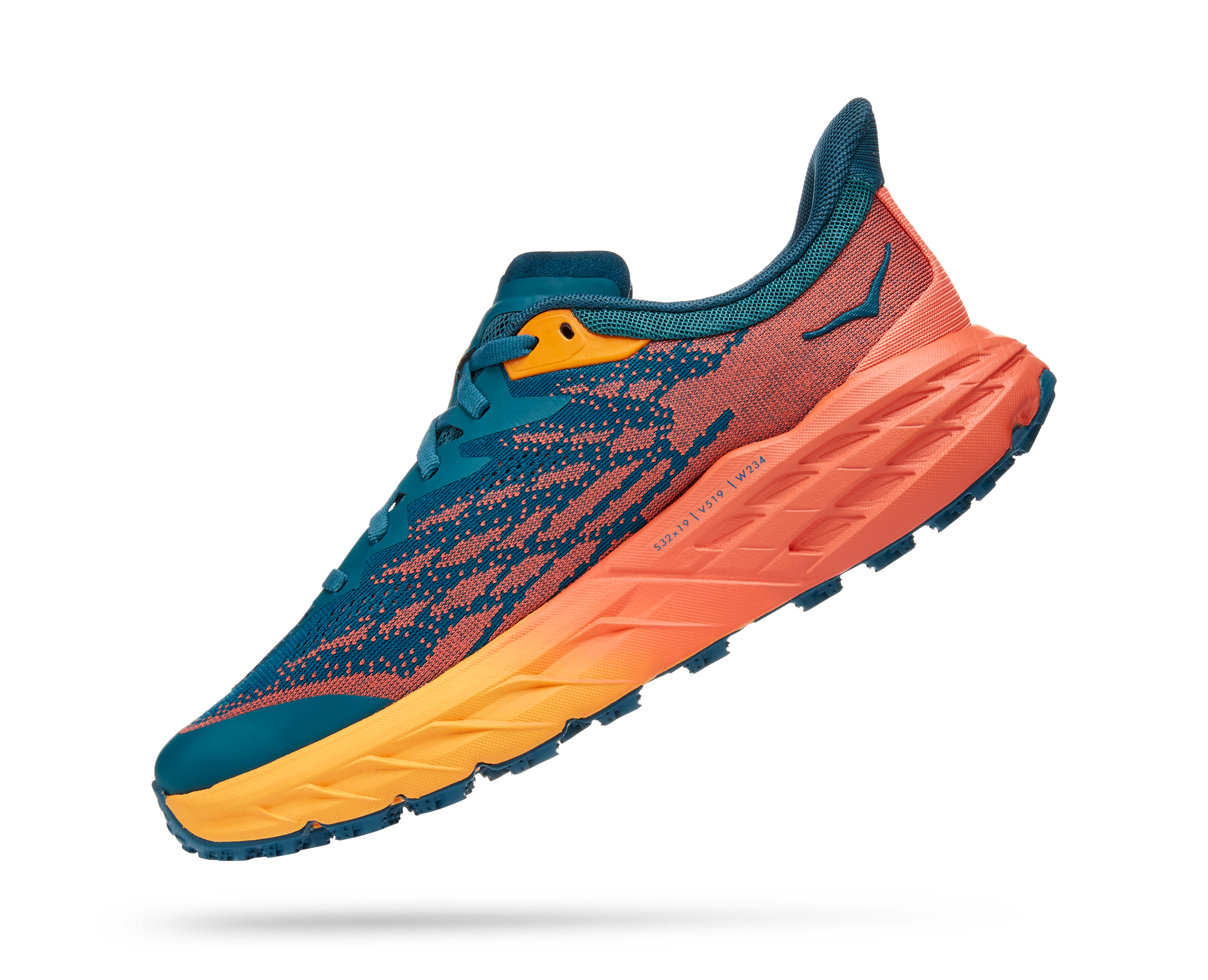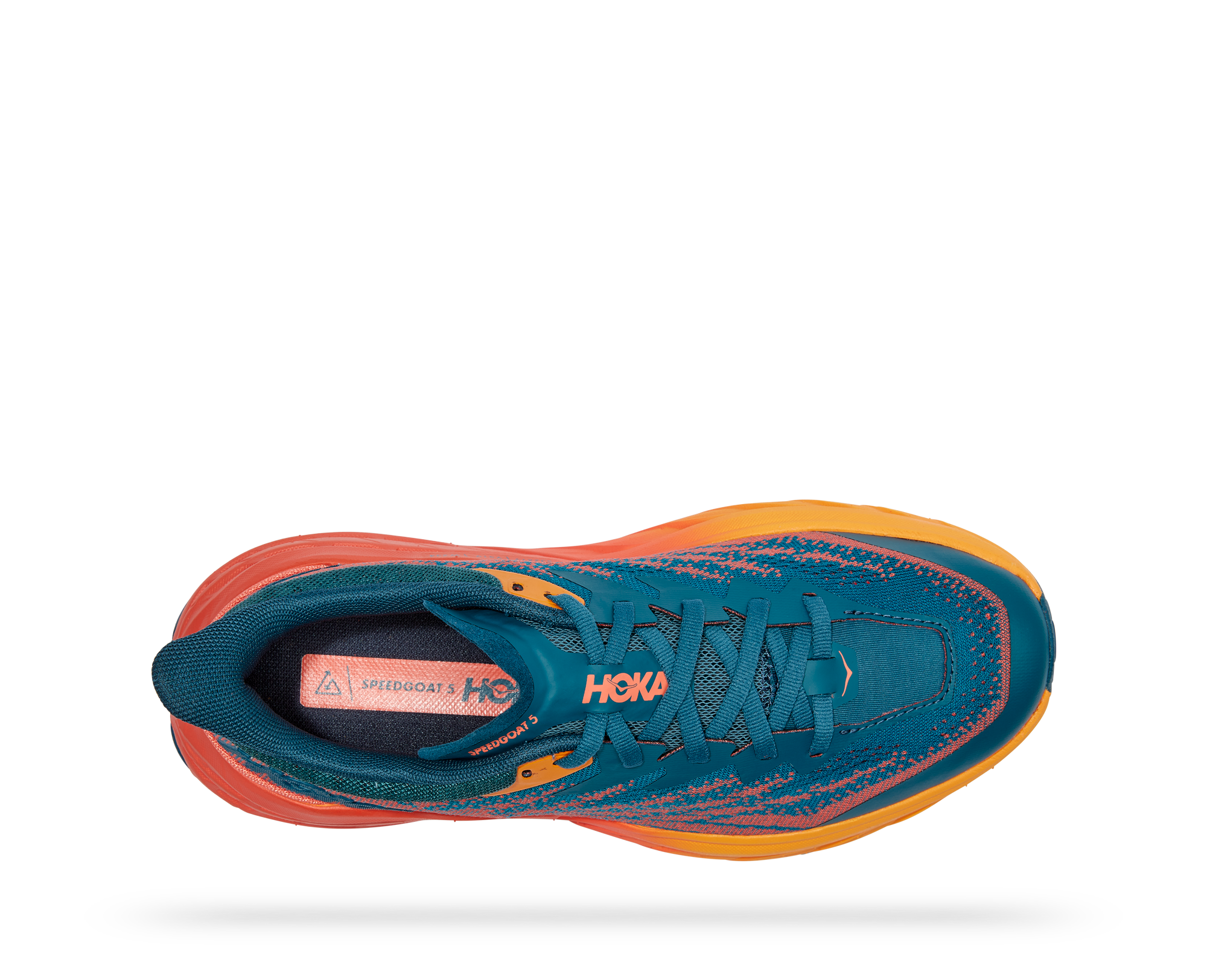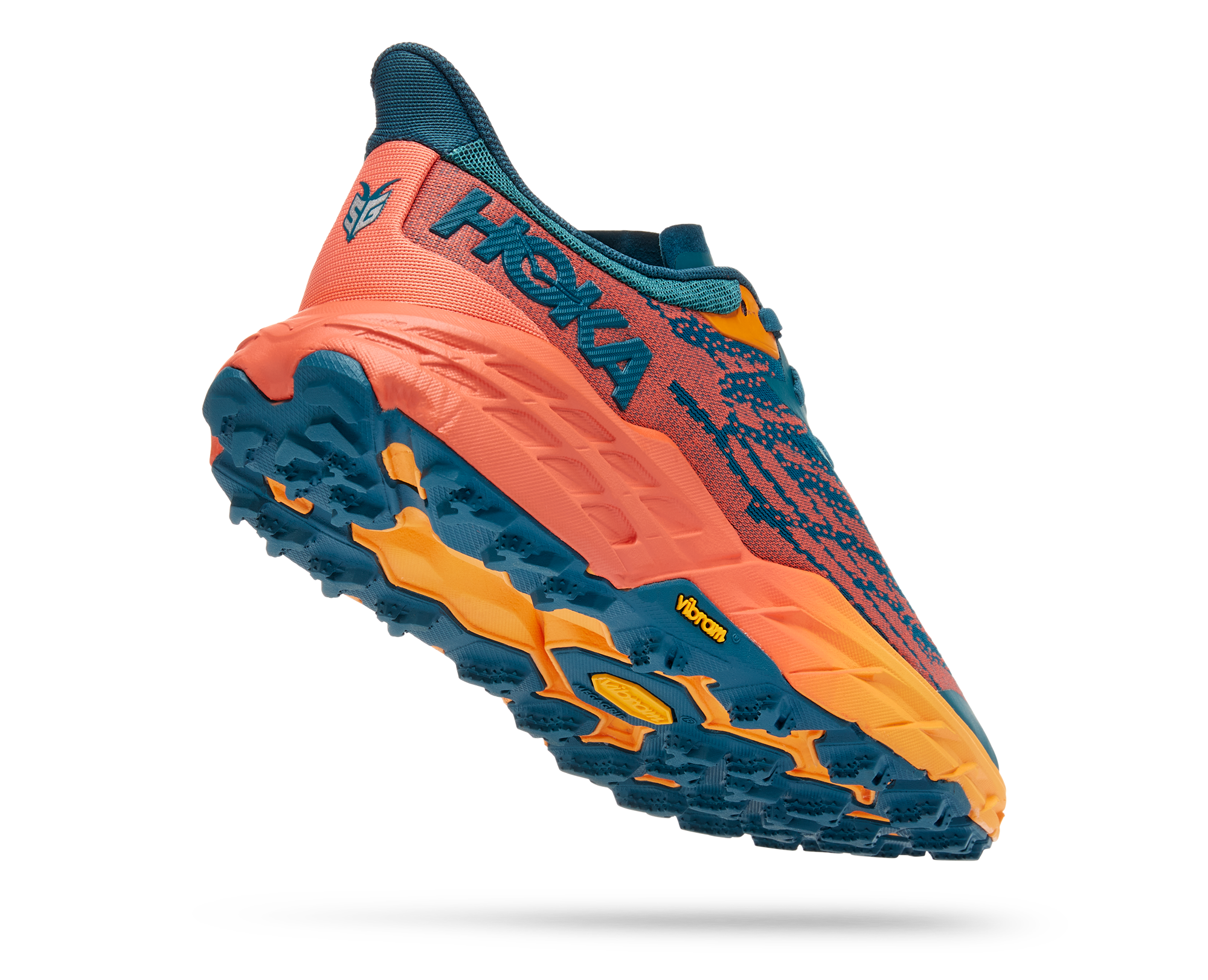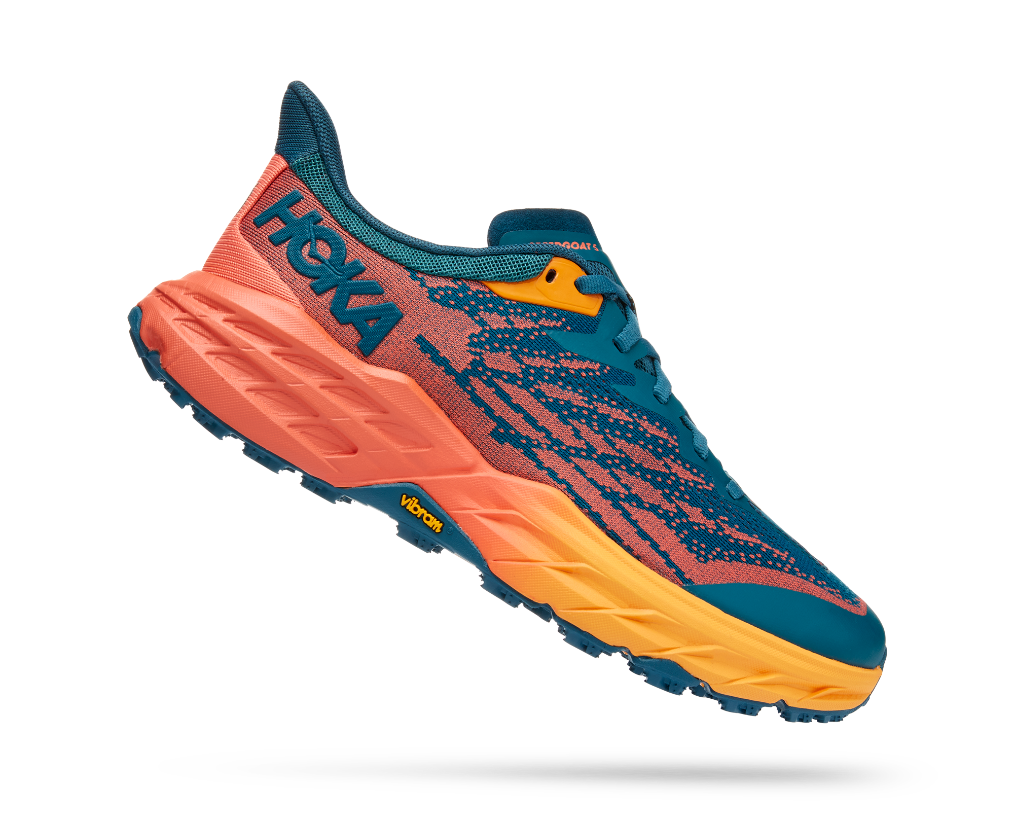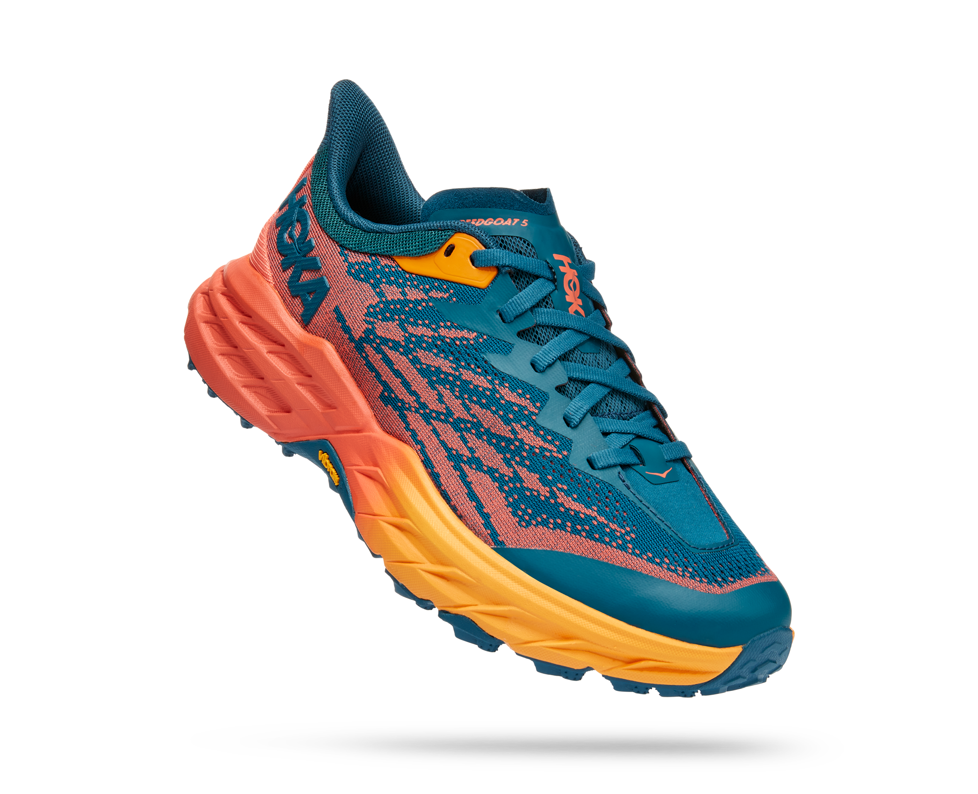 A workhorse designed for technical trails, the Speedgoat returns with less weight and more traction than ever before. A new shoe from outsole to laces, this trail beast is updated with Vibram Megagrip with Traction Lug for enhanced grip on loose soil. Retaining the same stack height and rocker profile, the Speedgoat 5 employs a lighter midsole compound and heartier, double layer jaquard mesh to inspire confidence on any terrain.